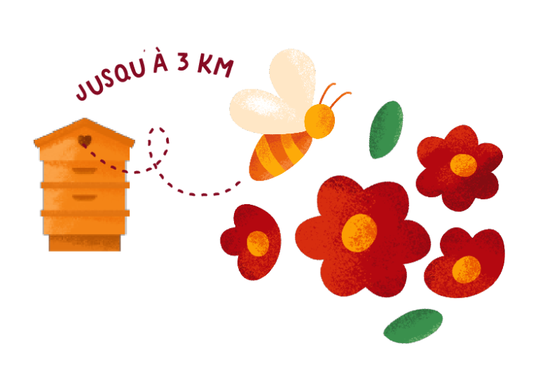 Pendant le trajet, le nectar commence déjà à se transformer grâce aux enzymes de l’abeille. Une fois rentrée, elle le transmet à une autre abeille pour poursuivre la production du miel.